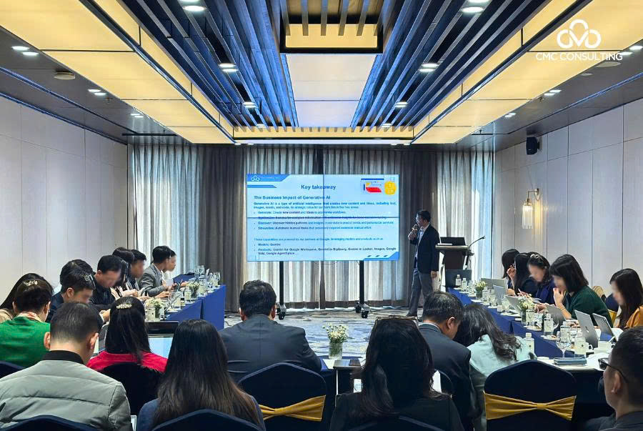 Với sự đồng hành và hỗ trợ của CMC Consulting, đội ngũ kỹ thuật và lãnh đạo Doanh nghiệp đã nắm vững cách vận dụng GenAI trong công việc và các bài toán nghiệp vụ; biết cách khai thác hiệu quả các công cụ trên hệ sinh thái Google Cloud; đồng thời hình thành tư duy chiến lược về AI để quản trị rủi ro và đảm bảo an toàn dữ liệu. Qua những bài tập thực hành và dự án mô phỏng cũng giúp ban lãnh đạo Doanh nghiệp tích lũy kinh nghiệm triển khai sát với nhu cầu của từng bộ phận.