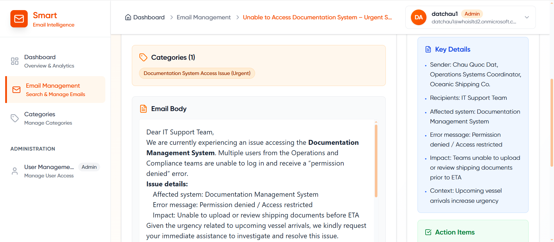 Built on the synergy of cloud infrastructure and Generative AI, Smart Email integrates deeply with Microsoft 365 to fully understand the context and intent behind each email. This capability transforms traditional inboxes into structured, intuitive data centers optimized for enterprise management.